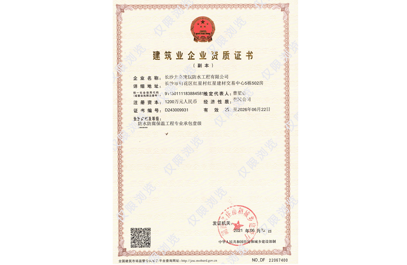在此次資質升級后,大禹巧匠將更有信心,也更加的有能力在防水行業(yè)中更進一步。